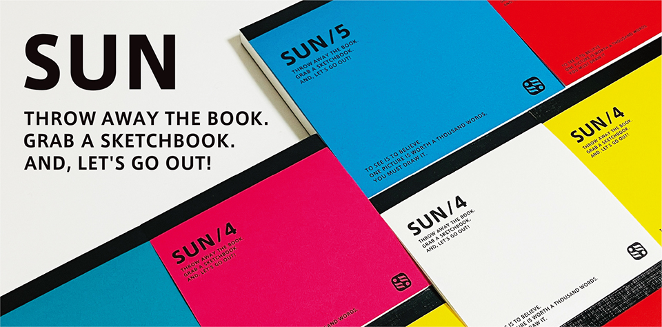 FIG/0 と同じ紙質で、やや薄めの画用紙を採用した FIG PAD を正方形に仕立てた『SUN』スケッチパッド。