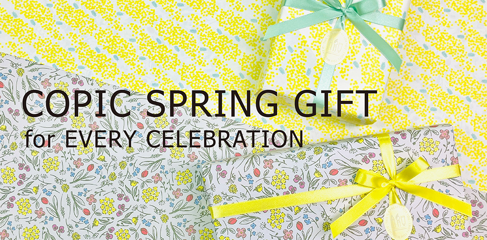 ミモザ柄や愛らしいお花柄など、季節を感じるステキなペーパーでラッピングを施した、【春柄ラッピング】のコピックセットも… !