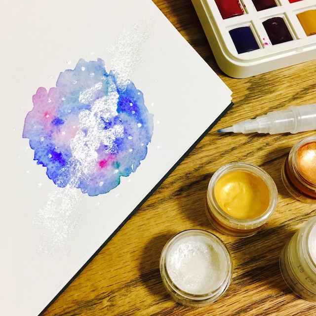 水彩に重ねたり、色に混ぜて使ったり。