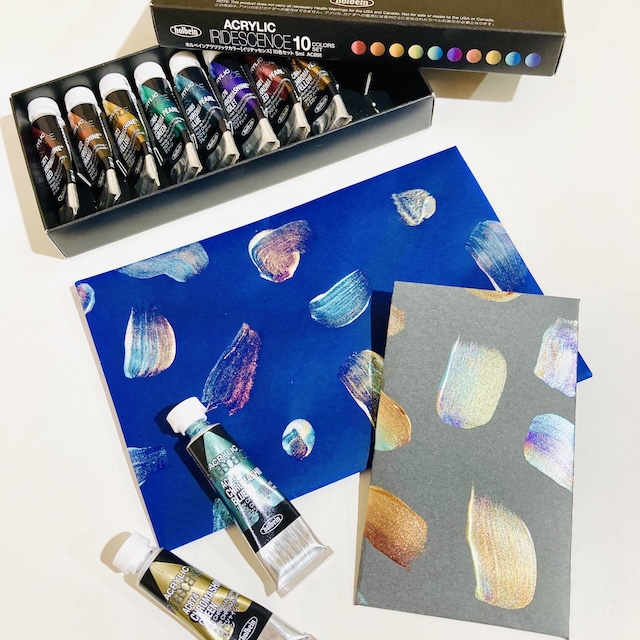 オーロラ箔のようにきらめく偏光カラーが美しい… ! 『ホルベイン アクリリックカラーイリデッセンス』。