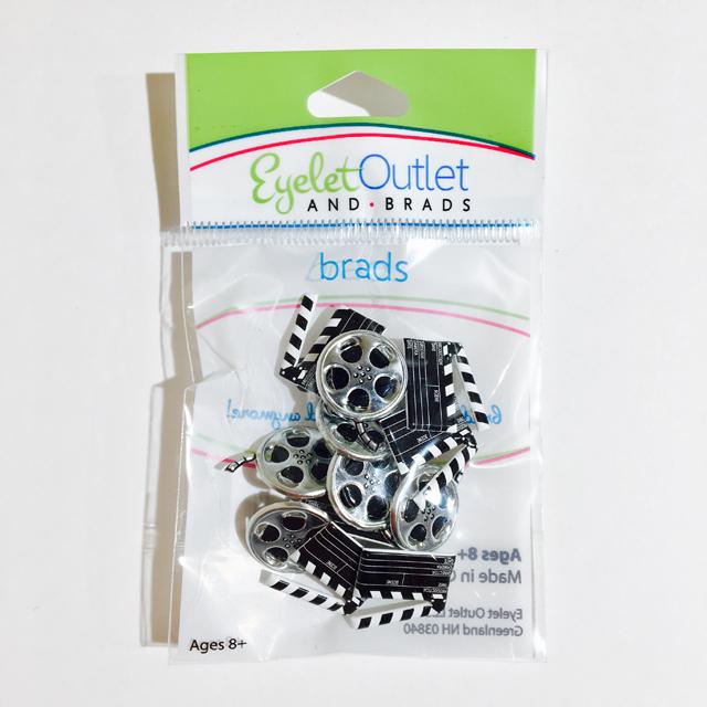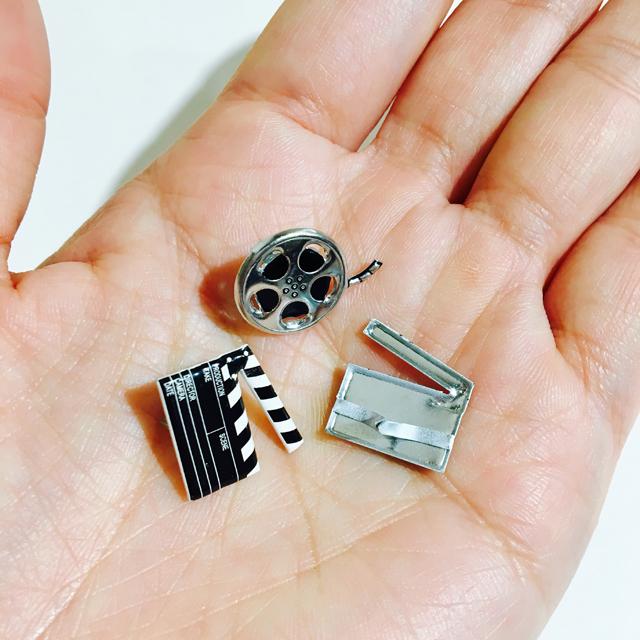 スクラップブッキングやカード作りにぴったり !フィルムとカチンコのモチーフがとってもステキな割ピンです。