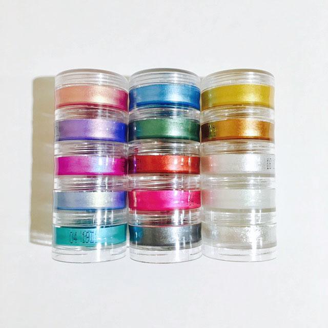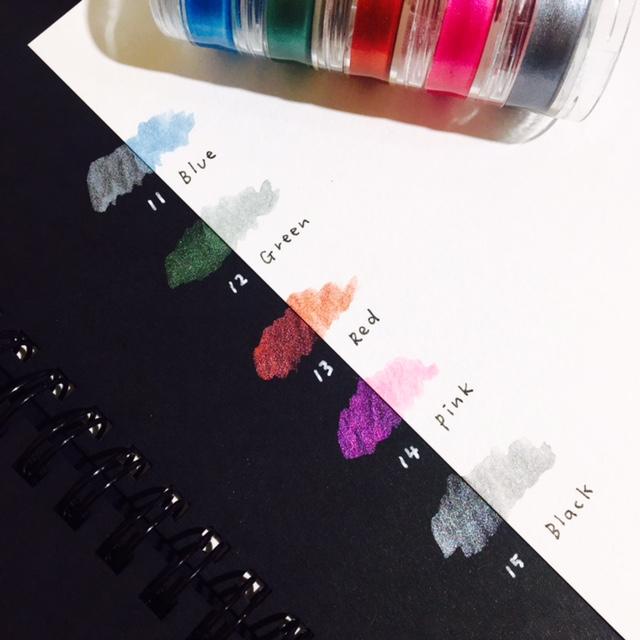 光の角度や紙の色によって魔法のように変化する 偏光カラー や、粗めのラメ粒子が驚くほど輝く クリスタル などの15色。