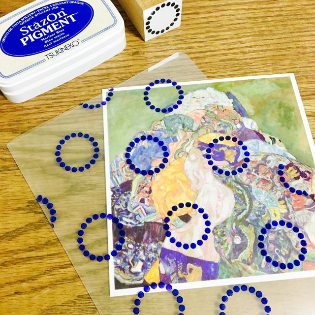 ビニール傘にスタンプで模様をつけたり、トレペやフィルムに押してラッピングしてみたり…