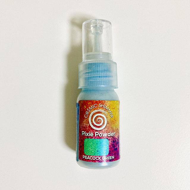 いくつかの色の染料と、マイカ (雲母) のパウダーが混ざり合った粉状の着色剤。水に反応してキラキラときらめきます。