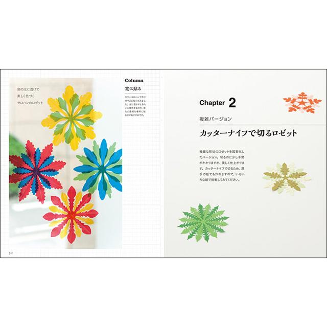 紙を折ってはさみで切るモチーフや、形を紙に書き写してそのまま切るモチーフなどなど、切り紙で再現されたロゼット状の美しい葉の形は見るだけでも楽しめます。