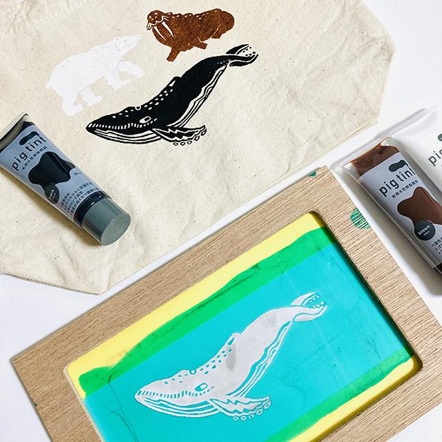 作った版は繰り返し使用できるので、同じ図案をたくさん刷ったり、色やアイテムを変えたりと、ひとつの版でたっぷり楽しめます◎