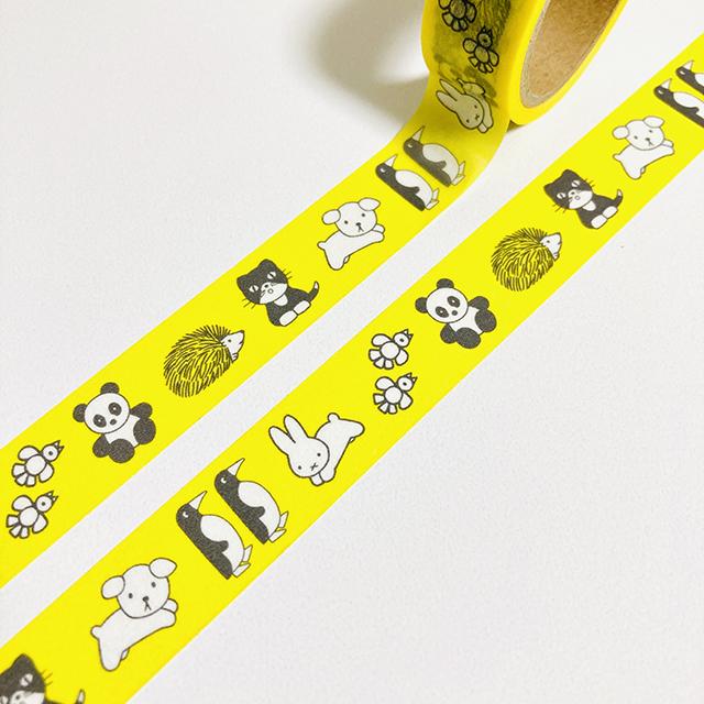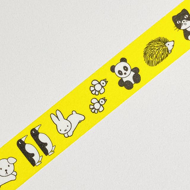 ミッフィーやブラック・ベアの生みの親としても知られる、絵本作家 / グラフィックデザイナー、ディック・ブルーナ のマスキングテープです。ブルーナさんの描く愛らしい動物たちがずらりと並んだキュートなデザイン。
