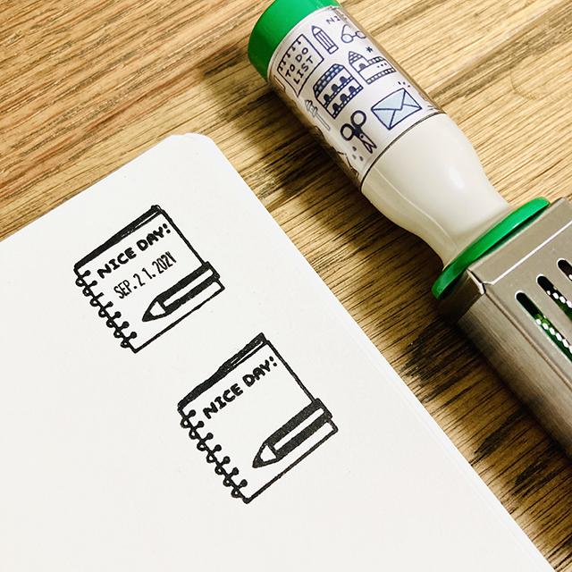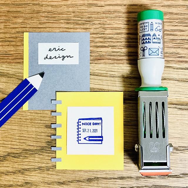 ノートと鉛筆のシンプルなイラストがとってもキュート !回転させて日付を印字できるサンビーの定番品『日付印』の eric デザインに、ちんまりかわいいSサイズが仲間入りです。
