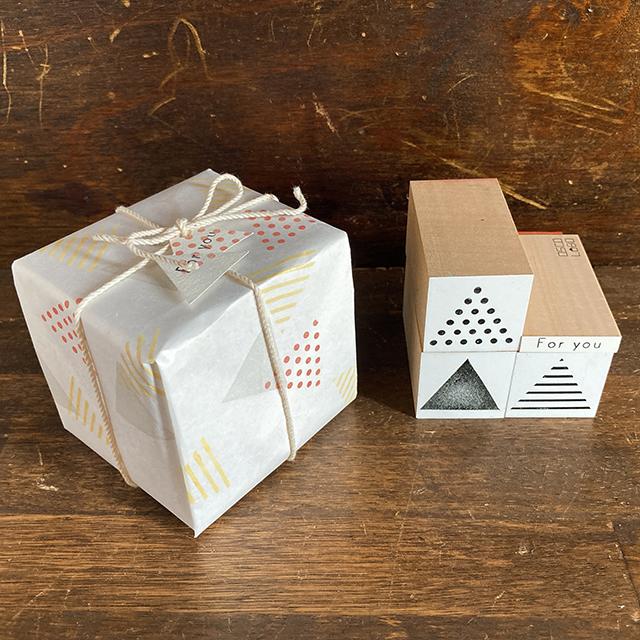 手作りカードやラッピングのアクセントに使いやすい、三角形のはんこです。背景にしても良し、イラストを描いて合わせても良し。