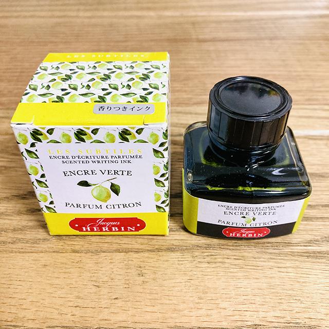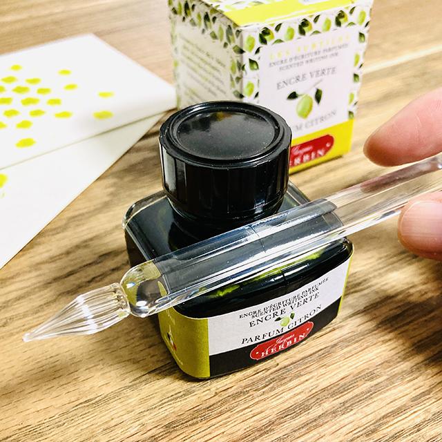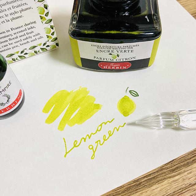 文字や絵を描くたび、レモンの爽やかな香りをほのかに感じるインクです。1670年にパリで開業したインク工房 メゾン・エルバン の、香りを放つ植物がモチーフのインクシリーズ。