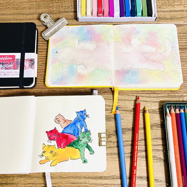 カラフルな表紙とマシカクのサイズ感がかわいい !"絵を描く手帳"