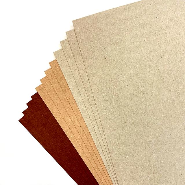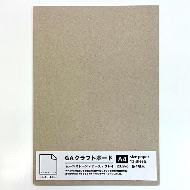 ナチュラルな色合いと古紙由来の細かなチリがつくる表情が魅力的な厚紙『GAクラフト』。違った色味を楽しめる3色を、4枚ずつのアソートパックにしました。