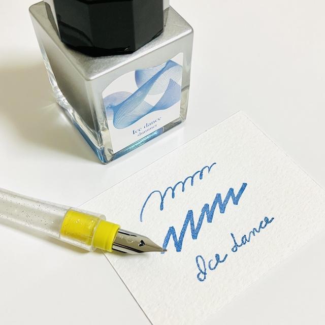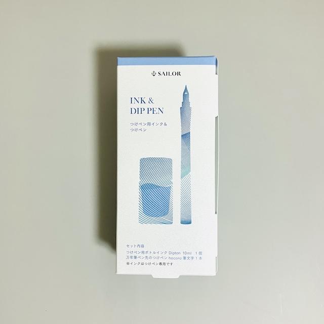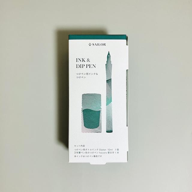 偏光ラメ入りの染料インク『Dipton (ディプトン)』のミニボトルと、万年筆ペン先のつけペン『hocoro (ホコロ)』の限定セットです。