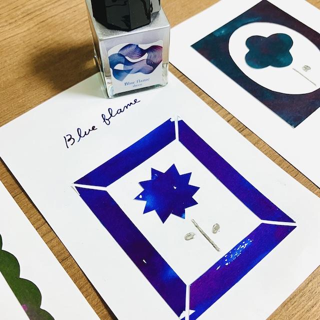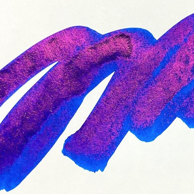 インクが溜まる部分に、インク色とは異なる色の金属のような光沢が生じる (フラッシュする) 魅惑のインクです。