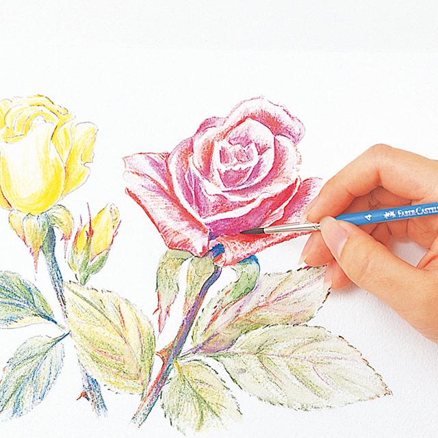 描いた部分を水で濡らすと、ふわりと溶けて水彩画のような表現が楽しめます。