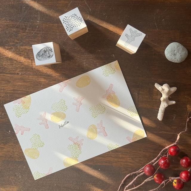 色を変えて重ねて押したり、たくさん並べてモヨウのように使ったり…