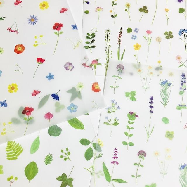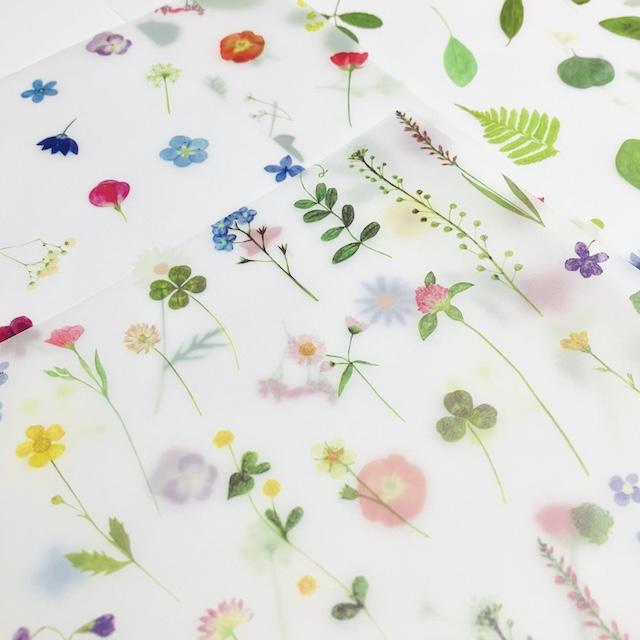 水彩でひとつひとつ繊細に描かれた、植物や草花のイラストがステキなトレーシングペーパー。自然の雰囲気そのままのさりげなさと、大人っぽいタッチが魅力的です。