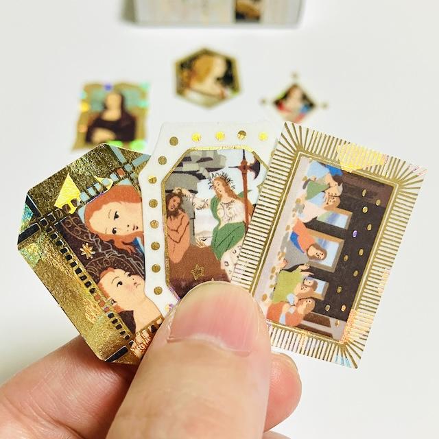 ダ・ヴィンチ『モナ・リザ』、ボッティチェッリ『ヴィーナスの誕生』などの繊細な筆使いと優雅な構図が、小さなアートシールに表現されています。