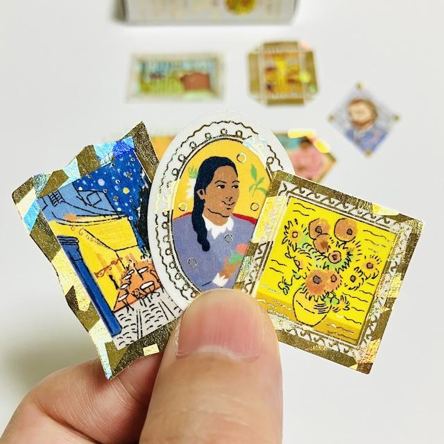 額縁風のカッティングや画家の組み合わせなど、細部までこだわりが詰まった手のひらサイズの名画シール。