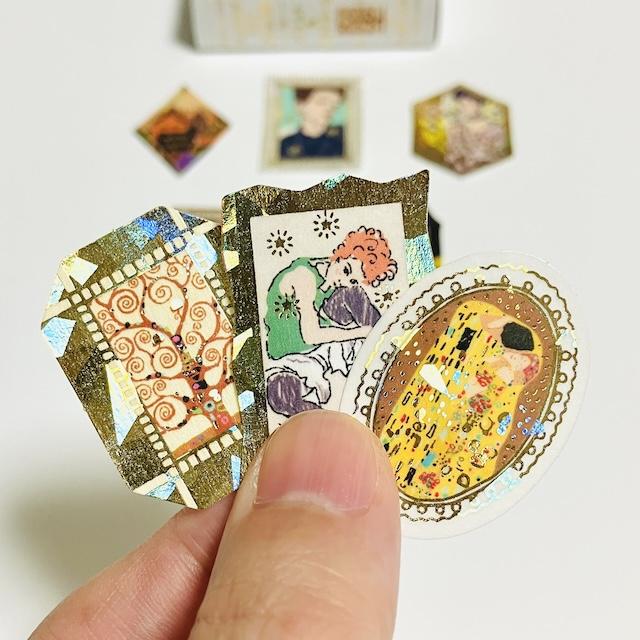 額縁風のカッティングや画家の組み合わせなど、細部までこだわりが詰まった手のひらサイズの名画シール。