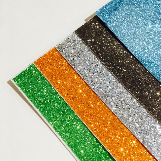 裏面がシールになったグリッターシートの 5色アソートセット。やわらかく切りやすいので、お子さまでも安心です。