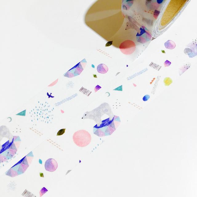 植物や動物たちの描写がステキな 布川愛子 さんの作品がマスキングテープになりました。キラキラ光る流氷にたたずむシロクマ柄は、まるで絵本の一場面のよう。
