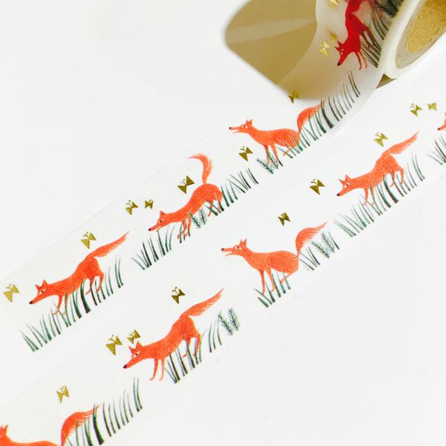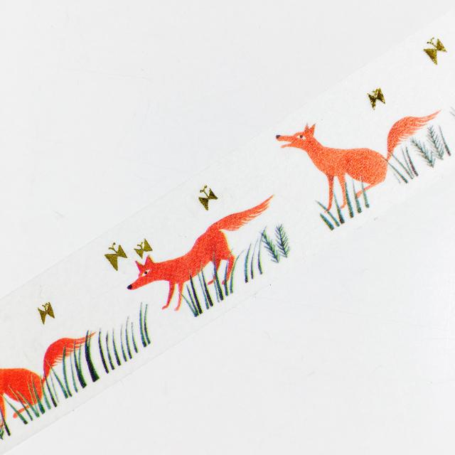 ところどころにキラリと光るゴールド箔がとっても上品。蝶々とたわむれる愛らしいきつねたちの物語が聞こえてきそう !