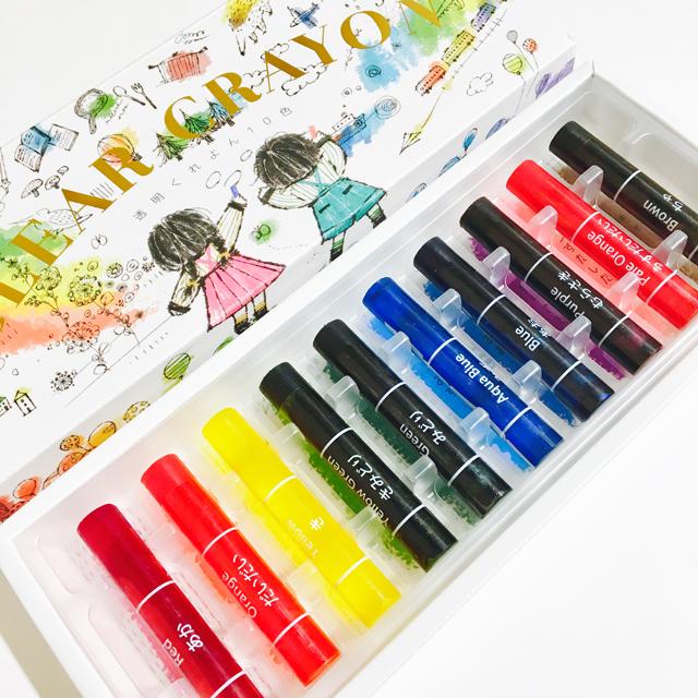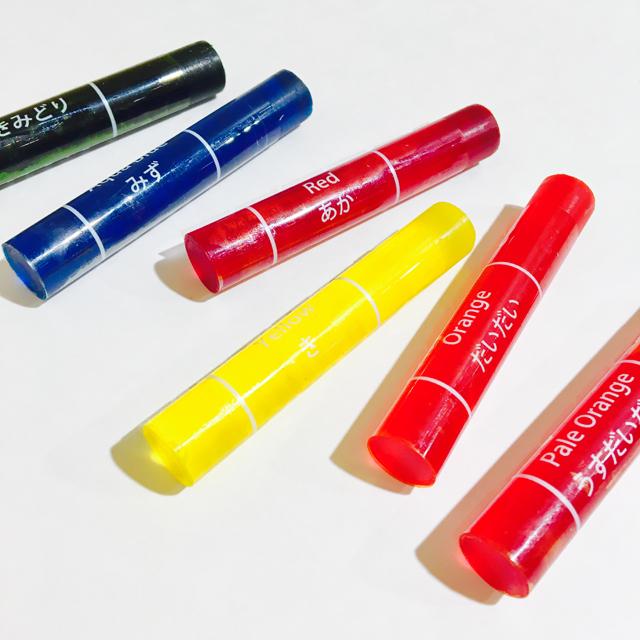 線画の上から塗ると透明水彩絵具で描いたように下絵が透けて見える、半透明のオイルゲルクレヨンです。