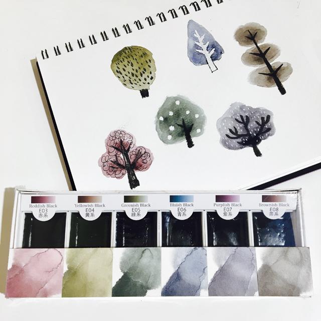 墨と同じ成分から作られた、まったく新しい淡彩画用の絵具墨。