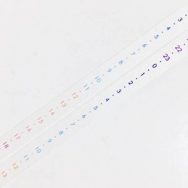 0〜23の数字が印刷されたマスキングテープ。どんな紙にもタイムラインが作れちゃうスグレモノです。