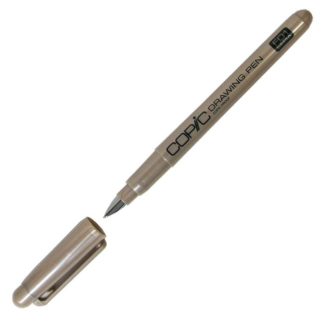 万年筆型のペン先を、漫画原稿用に使えるペン先に改良した中綿インク式の新型ペンです。マルチライナーで定評ある色調のセピア色を採用し、抑揚のあるセピア色の主線が描けますので、カラー原稿に最適です。乾くと耐水性になり、コピックで着色できます。ペン先はF01(黒)と同じで、描画感覚は丸ペン〜Gペンの中間感覚です。