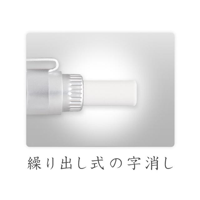 従来の補助軸と異なり、筆記時のバランスと鉛筆をセットした際の重さを重視し、鉛筆装着部にはあえてグリップ部を残し、鉛筆でありながら別の筆記具を連想させる鉛筆ホルダーです。セットした鉛筆の硬度がわかる硬度表示窓や2次メッキ加工の施されたロゴマーク、消しゴムが内蔵されたエンド部など、随所に持つ人のこだわりを醸し出せるようなコンセプトで開発されています。