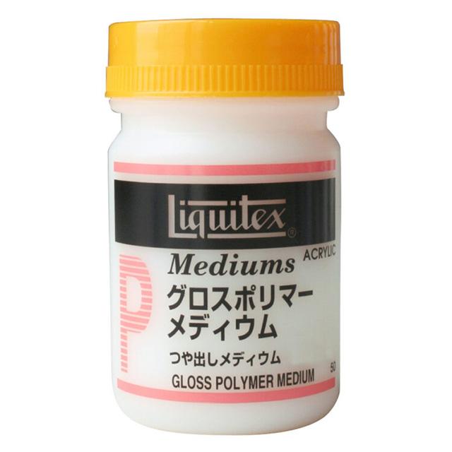つや出し効果用のメディウムで絵具に混ぜると透明感が増します。乳白色をしていますが、乾くと透明になります。絵具を水で薄めすぎると定着力が落ちるので、少量混ぜておぎないます。