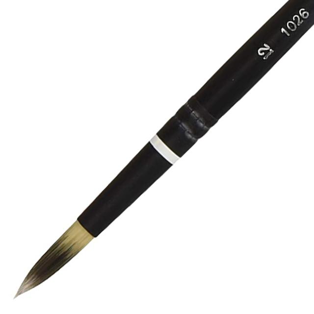 ナイロン画筆が、初めてインターロックになりました。マキ製法(天然毛の中で唯一豚毛だけが自然にカールしていますが、それを平均に内側に揃えて穂先を作る製法)の効果を得るためにきわめて新しい化学的技術を開発し、ナイロン毛の内側にカールをつけたのが「インターロン」です。そのため穂先が外側にバラつかず、まとまりの良い赤テンやコリンスキーの描き味を実現しました。