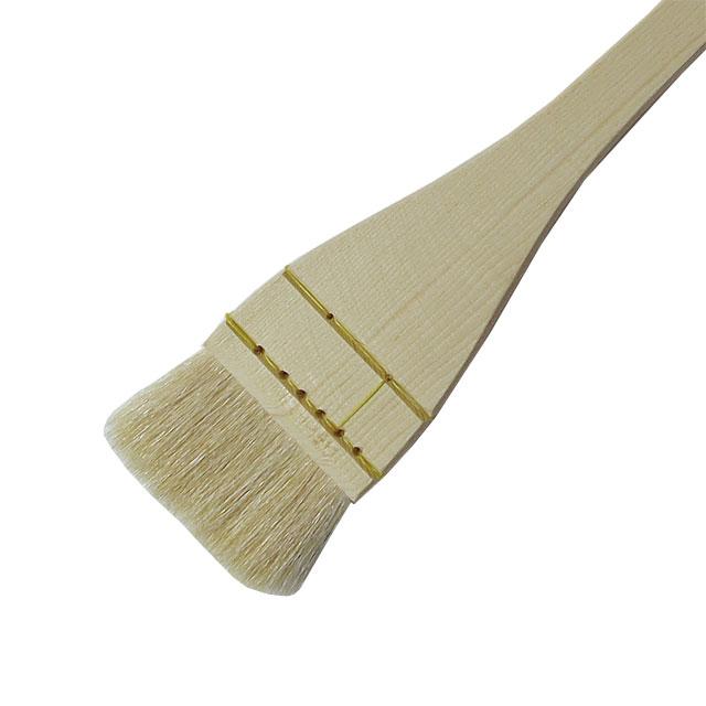 平塗りや水張りに使う刷毛(はけ)。水をよく含む羊毛を使っているので、1 回の浸しでよくのびます。