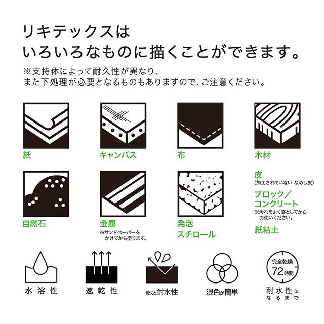 水を加えずにそのまま塗ることができる柔らかい絵具です。また、塗った直後の濡れ色と乾いた後の色の差が少なく、完成した作品そのものをイメージしながら描けます。他の水性絵具(アクリル絵具、水彩絵具、ガッシュなど)と混ぜることもできます。
