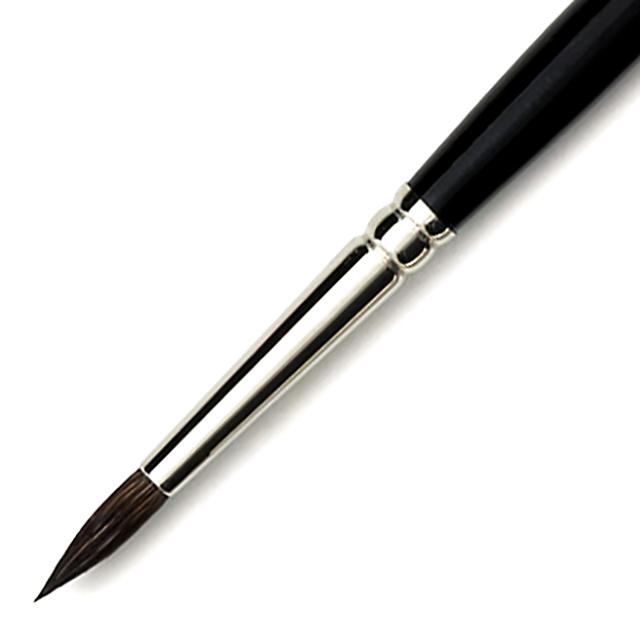 もっともポピュラーな型で、筆先の揃いも水含みも良く、細密描写や線描などに適しています。 含んだ絵具の使用量の調整が容易にできます。大変使い勝手の良い筆です。