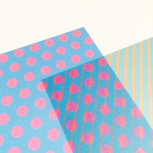 トレペ特有の透け感に、全体にちりばめられたパターン模様がとてもマッチングしています。オリガミとしてはもちろん、ラッピングやコラージュ素材、小さくカットしてメッセージカードなど、使い方イロイロ大活躍のアイテムです。