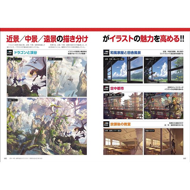 イラストや背景を、さらにうまく描くには、近景/中景/遠景の描き分けが必要不可欠です。そこで本書では、描くイラストのテーマごとに要点を解説しています。どんな構図にしたらいいのか、どう要素を配置したらいいのか、描き込みの強弱の仕方などなど。近景/中景/遠景の描き分けを重視した9つの作例を基に丁寧に解説しています。