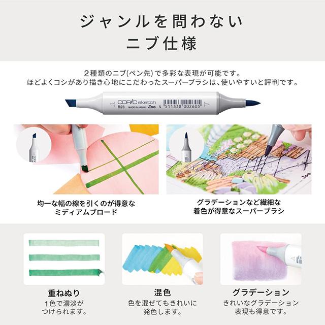 コピックスケッチはコピックファミリーの中で、最も人気のあるプロフェッショナル向けモデルです。