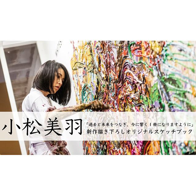 現代アーティスト小松美羽による「過去と未来をつなぎ、今に響く1冊になりますように」というメッセージが込められた、新作描き下ろしオリジナルスケッチブックです。表紙は新作の書き下ろしイラスト、裏面にはオリジナル文様が箔押しされています。中面には小松美羽からのメッセージやプロフィール、作品などを紹介しています。