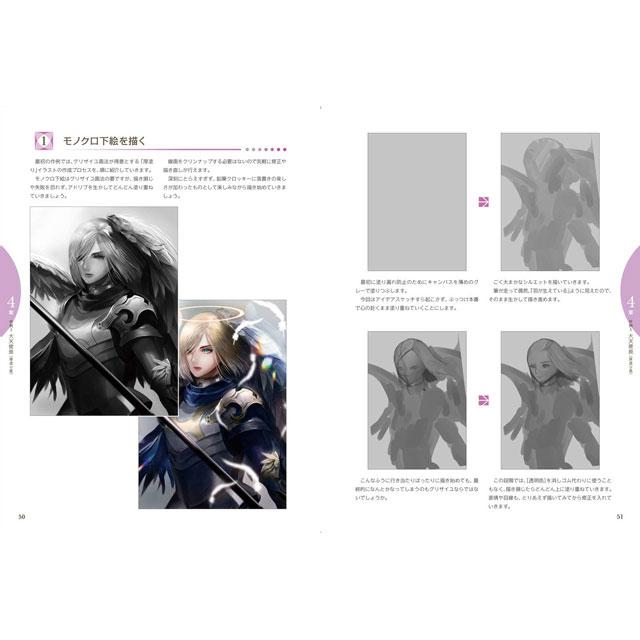 グリザイユ画法とは、下塗りの段階で陰影をモノクロで塗り分けておき、あとから色を重ねて「厚塗りイラスト」を短時間で仕上げることができる技法のことです。