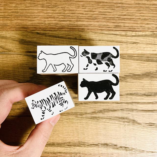 トラにもネコにもなる、シンプルなはんこ。組み合わせて楽しい、オスコラボの動物スタンプです。クロネコとしてはもちろん、柄のトラネコはんこを重ねると、色の組み合わせも自由自在 ! いろんなバリエーションのトラやミケネコを作れちゃいます。