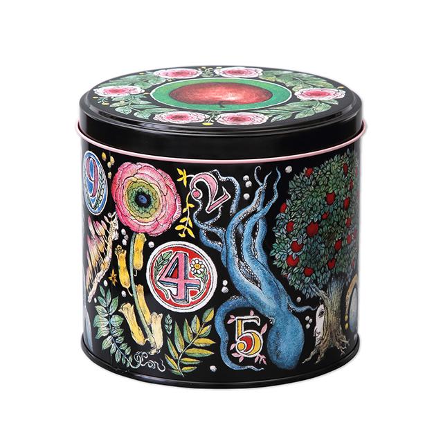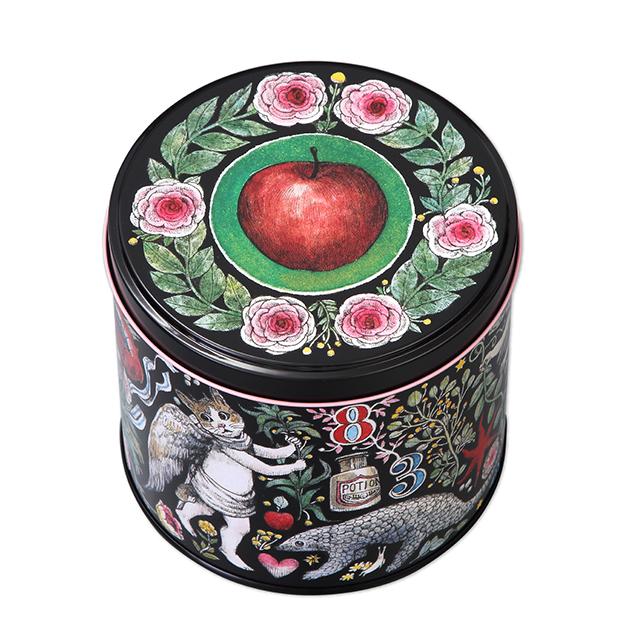 缶の内側やフタの裏、底部分にまで緻密に描き込まれたデザインは、圧巻の一言。