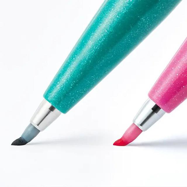 ロングセラーのぺんてるサインペンに筆のタッチ感をプラス。いつもの手書きを一段おしゃれにしてくれます。