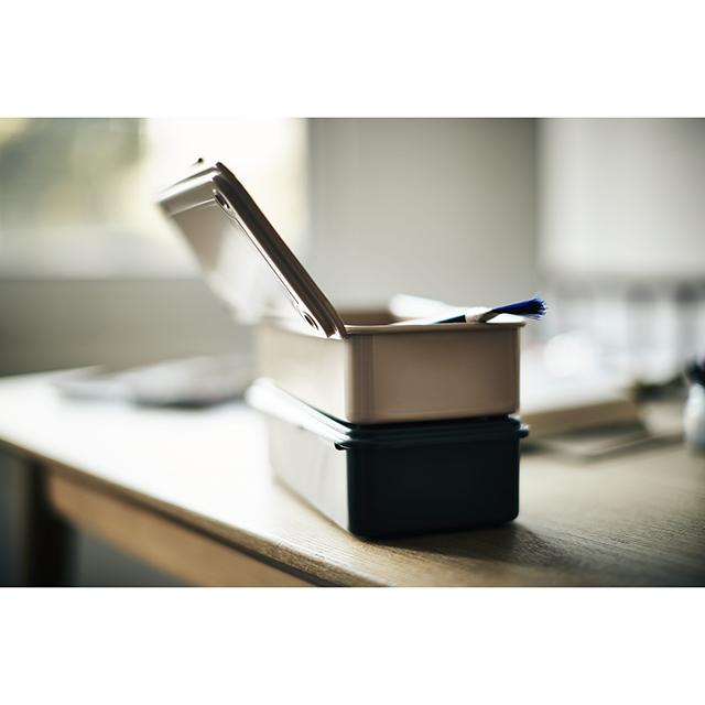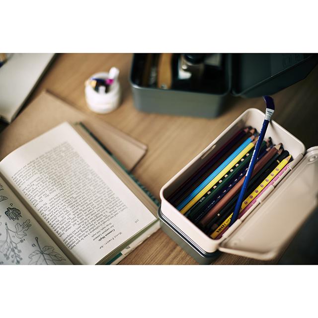 コピック・色鉛筆をはじめとした画材や筆記具の収納に最適な、トランク型工具箱。2022年冬の新色です。スタッキングも可能なので、大量のペンや小物たちを一箇所にまとめてしまっておけます。丈夫なプレス一体型で、耐久性と機能性はお墨付き。デスクに置いておきたくなるクールな佇まいもステキですね… !