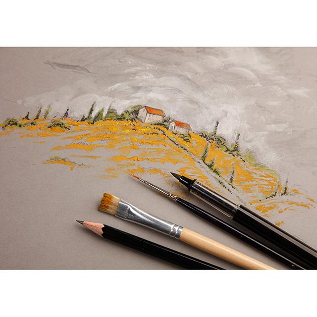 しっかりとした厚みで、水彩・油彩・鉛筆・カラーインクなど、描画材を選ばず使えます。ホワイトやパステル・ネオンカラーでのスケッチにもオススメです !
