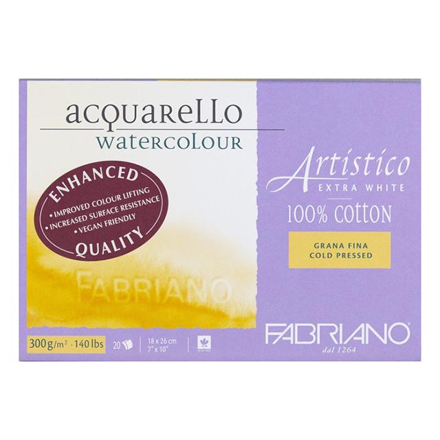 ファブリアーノ社はイタリアを代表する製紙会社で、750年以上にも及ぶ水彩紙の歴史を持ちます。その中で代表的な水彩紙「アルティスコ エキストラホワイト」は、ファブリアーノ社の歴史を受け継ぐ、コットン100%の最高級水彩紙です。