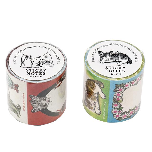 老舗画材メーカー・ホルベインとヒグチユウコさんの2024年コラボレーションアイテム。全面のり付き&ミシン目入りで、1柄ずつピリリと切り離して使えるロールふせん、2種・各2個入りのセットです。