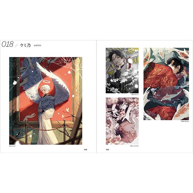 作品には、男性のかっこよさ、かわいらしさ、色っぽさ……といった魅力がたっぷり詰め込まれています。巻末の作品コメントとともに鑑賞すると、そこに込められた想いやこだわりをより強く感じ取ることができます。あなたの好みに合うお気に入りの一枚をぜひ探してみてください!